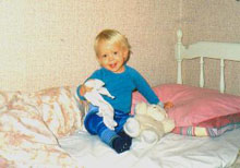 Mikael är så här glad när han får vara Hemma hos farmor! |