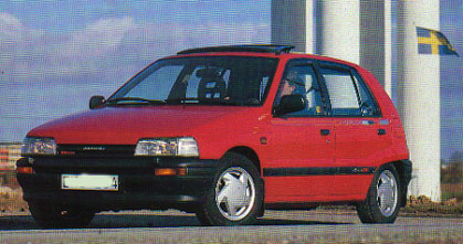 Det här är min fjärde bil! En Daihatsu Charade -87 Jag bara "kände" när det var dags att köpa den. Tittade i en biltidning och såg den." Här är bilen" tänkte jag. Skickade dit min son som sa att bilen var OK. Åkte själv dit och tittade och provkörde den. Efter 10 min sa jag. "Den tar jag", utan att ha titta på andra bilar. Bilmäklaren sa att det var rekord av snabb försäljning. Jämna pengar fick han också. Men dom var inte redo att lämna ut bilen så jag fick vänta ett par dagar. Min bror som var med hittade heller inga fel. Nu har bilen gått några år. Jag har upptäckt att bilar måste tvättas oftare än vad jag gör. Några längre turer har det inte blivit. Den går mest bara till jobbet och kortare sträckor. Mamma orkar inte längre med några Siljansturer så det har inte blivit av att åka ensam. Termostaten är inte bra men bilen är seg och har klarat kallstart i -22 graders kyla. Men nu har bilbesiktningen hittat en rostig balk igen. Jag var till min bilkille och han lugnade mig med att den här gången går det att svetsa i en ny bit plåt. Det är nog dags för en Ny bil snart igen. Naturligtvis blir det en "Japanare" då också. | ![]() |