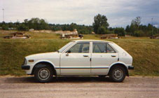 Nu var det dags för tredje bilen. Mamma hade fått både Grå och Grön starr så hon kunde inte köra bil längre. Den här bilen, en Daihatsu Charade -83 köpte jag till mig själv. Jag skulle ta ett lån på banken men det var krångligt. Snart var det Påsk och jag kände mig stressad. Då fick jag hjälp av en dagisförälder som fixade lånet på sin fritid. Han var ju högsta banktjänsteman på den banken. Barnen på min förskola tyckte så synd om mig så dom tillverkade egna pengar och gav min en massa hemgjorda sedlar. Dom tog jag med när jag hämtade bilen. Jag kände att jag hittat min" pärla". Alla sa den var OK. Eftersom jag var gammal bekant med dom på Bilfirman så lämnade jag fram barnens sedlar. Bilmäklaren skrev ut ett låtsaskvitto och la resten av pengarna i ett kuvert i retur till barnen. Det tyckte vi alla var jättekul. När jag sen kom till jobbet fick jag åka ett Ärevarv runt gården medan barn och personal beundrade min Bil. Eftersom den hade bara tre cylindrar. |