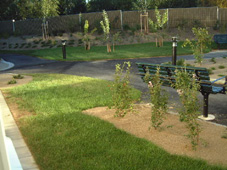 Här är parken utanför mammad fönster där hon kan promenera |